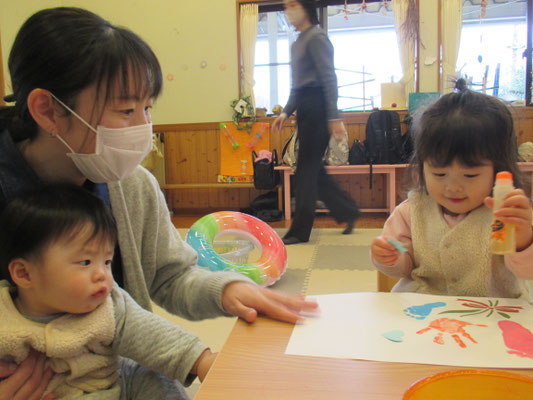 今月はこども達の手形足型で作ったブーケにママとの写真を飾って仕上げました。一年間毎月参加してくれるお友だちもいて、お部屋に飾ったりファイリングして大切にしてくれていったりするお話を聞くこともできました。ありがとうの気持ちが込み上げます✨